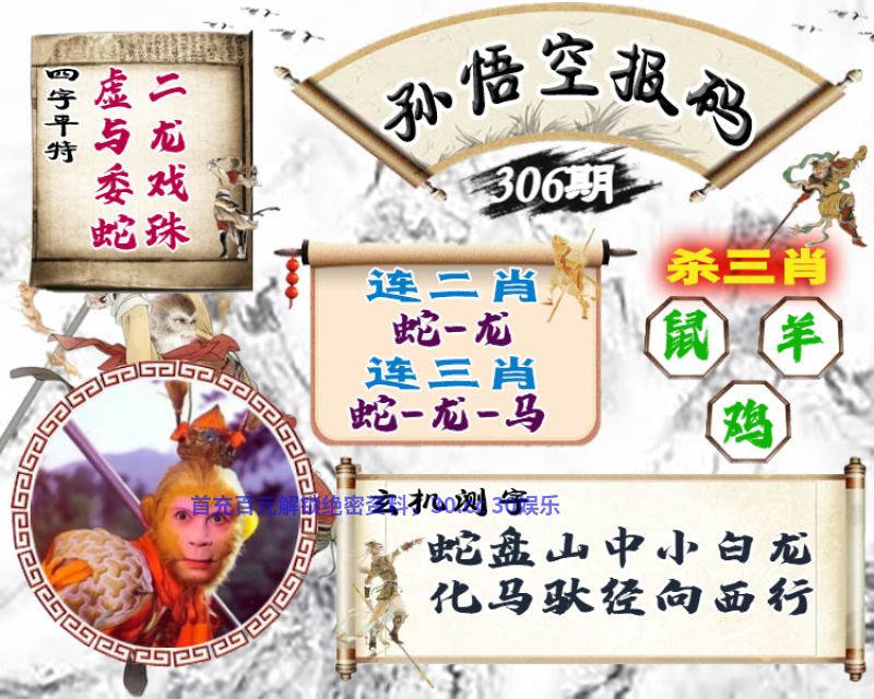306期推荐⑨肖:鼠鸡狗龙虎牛蛇猴马